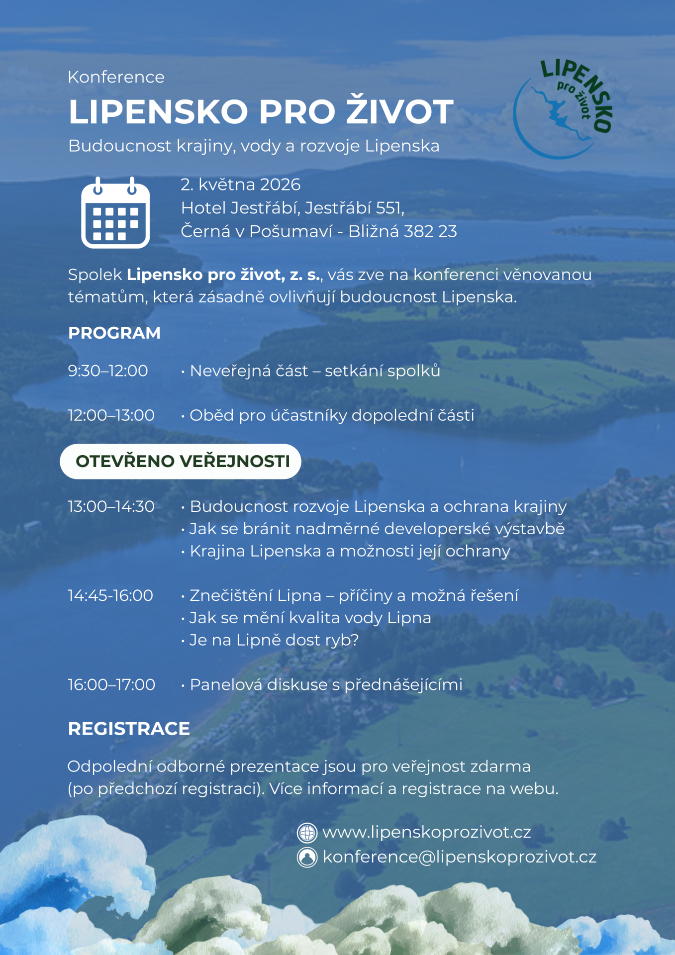 Spolek Lipensko pro život z.s. pořádá konferenci určenou všem podporovatelům spolku Lipensko pro život a ostatním milovníkům přírody na Lipensku. Odpolední část konference s odbornými prezentacemi je přístupná široké veřejnosti a účast je bezplatná. Z organizačních důvodů prosíme účastníky o předchozí registraci. Všichni jste srdečně zváni.